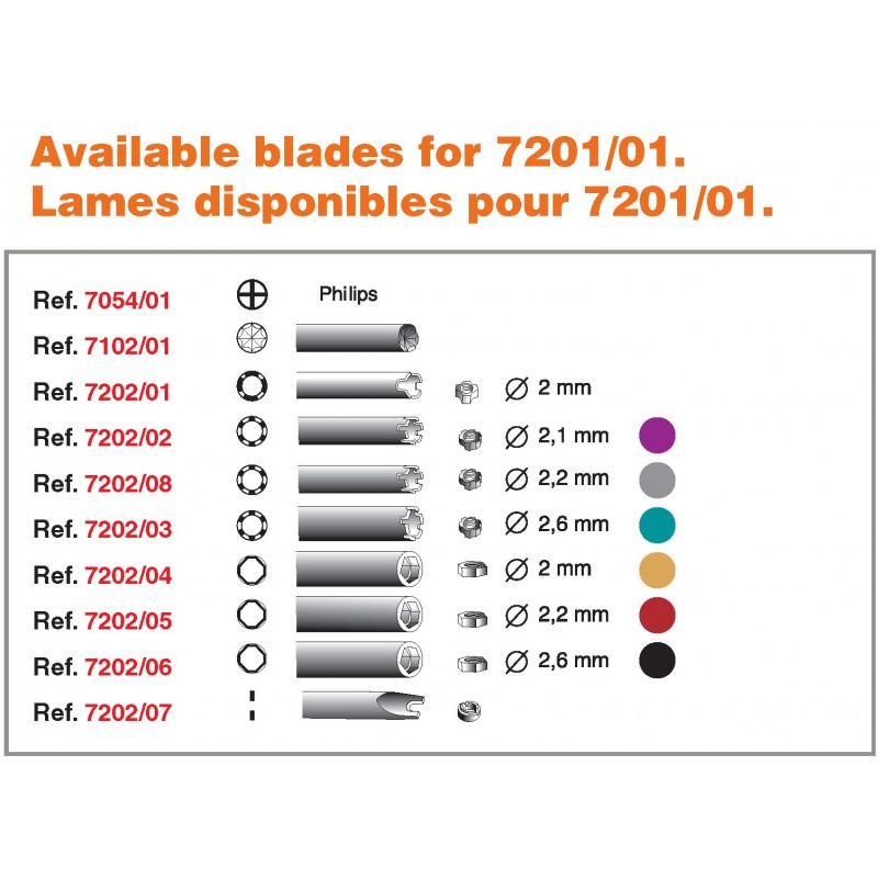 Blades available: 7054/01, 7102/01 and all 7202.