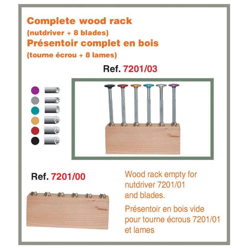 Complete wood rack (nutdriver + 8 blades).