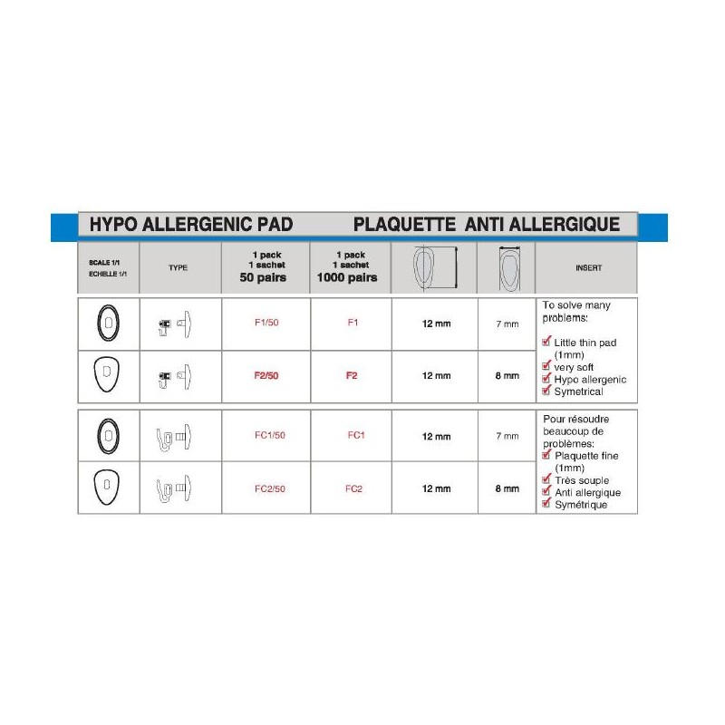 Hypo-allergenic pad, symmetrical, to screw, thin and soft.