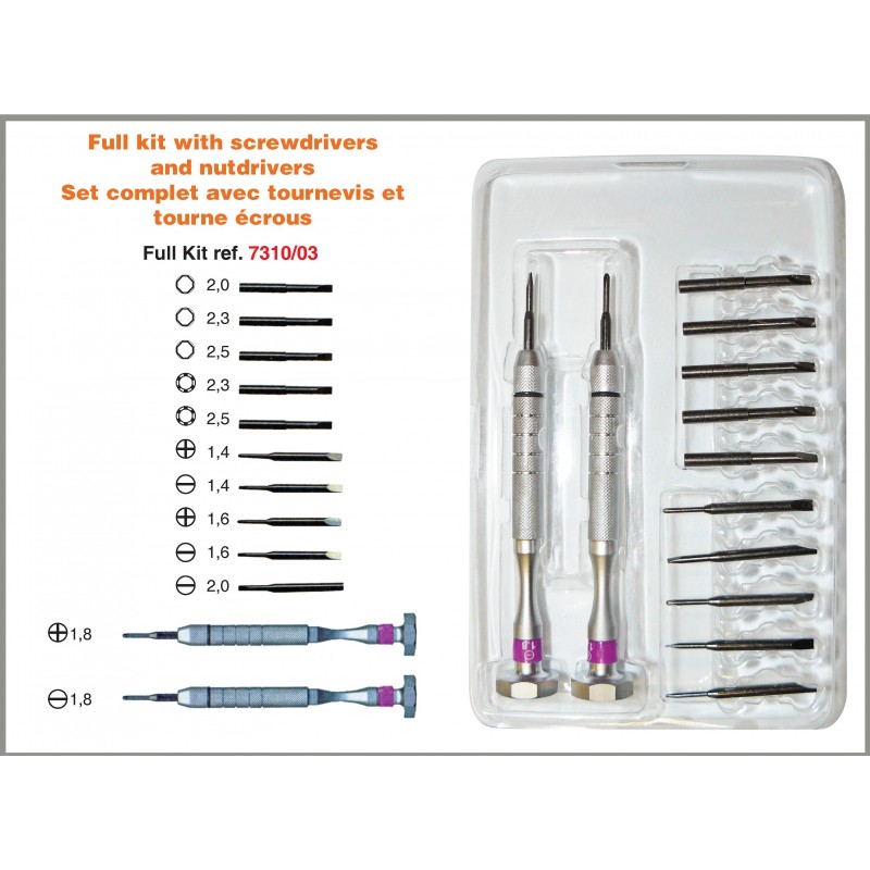 Set complet avec tournevis et tourne écrous (voir photo pour les tailles).