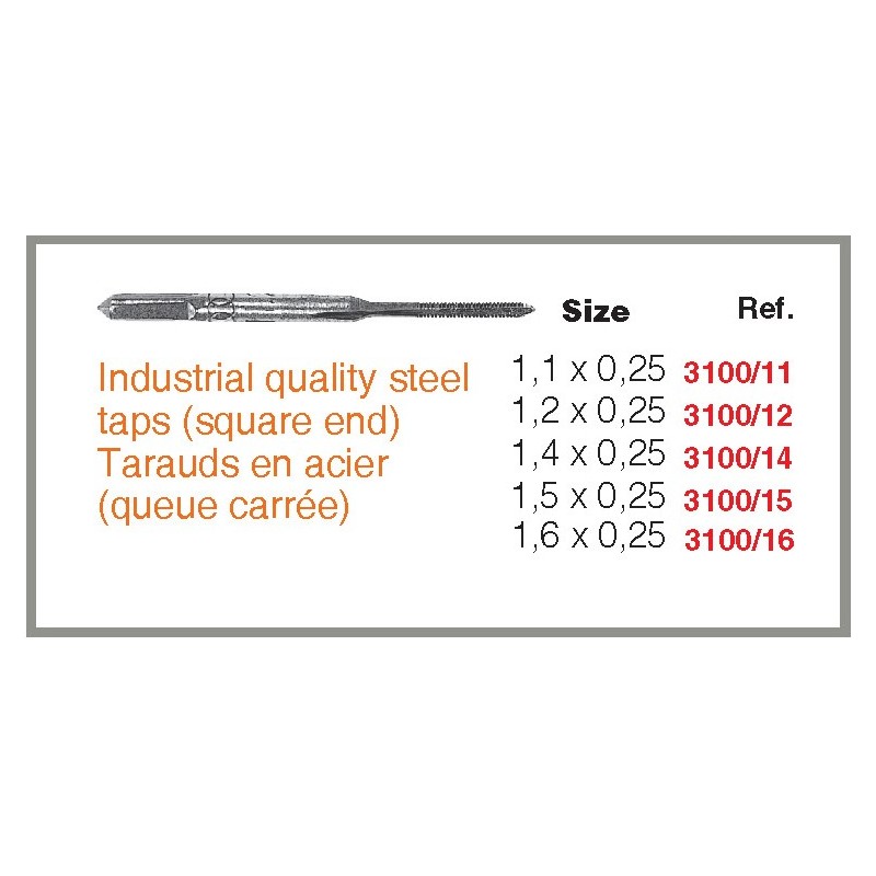 Tarauds en acier (queue carrée). Mesure :